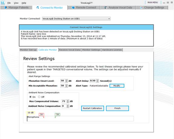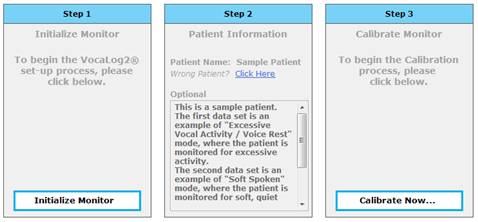 initialize and calibrate the Vocal Activity Monitor, connect remotely